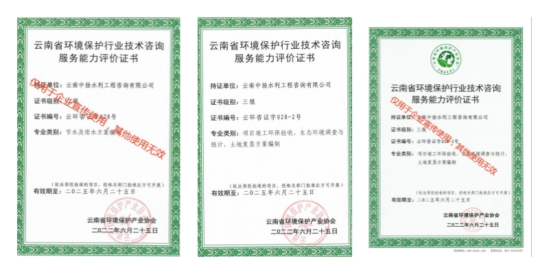 云南中揚水利工程咨詢有限公司成立于2011年,注冊資金100萬元整。公司從事的主要業(yè)務(wù)為生產(chǎn)建設(shè)項目水土保持咨詢設(shè)計(水保方案編制、水保監(jiān)測、技術(shù)評估及咨詢)、水土保持規(guī)劃、水利工程設(shè)計(農(nóng)田水利、河道)、可行性研究報告編制、土地復(fù)墾等。公司已取得水土保持方案編制、水土保持監(jiān)測、工程咨詢備案、環(huán)境污染治理、環(huán)境保護(hù)行業(yè)技術(shù)咨詢服務(wù)能力評價證書、民用無人駕駛航空器經(jīng)營許可證等資格證書,是云南省水土保持學(xué)會和云南省環(huán)境保護(hù)協(xié)會會員。